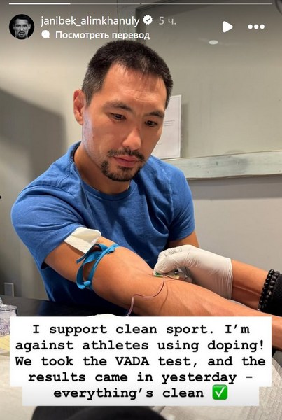 «Я поддерживаю чистый спорт. Я против того, чтобы спортсмены использовали допинг! Мы сдали тест VADA, и вчера пришли результаты — все чисто», — написал Алимханулы.