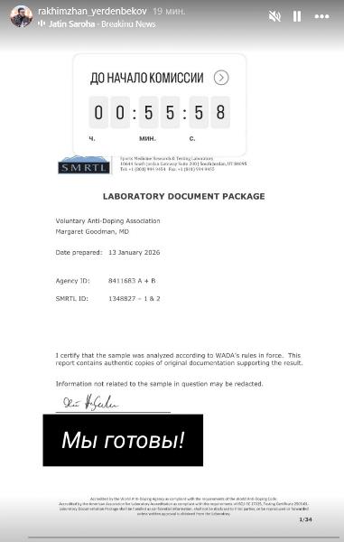 У себя в Instagram Stories он опубликовал письмо от представителя Добровольной антидопинговой ассоциации (VADA), в котором сообщается о том, что взятая у Алимханулы проба B была проанализирована в соответствии с правилами WADA (Всемирной антидопинговой ассоциации). «Мы готовы!», — написал он, прикрепив таймер обратного отсчёта до комиссии.