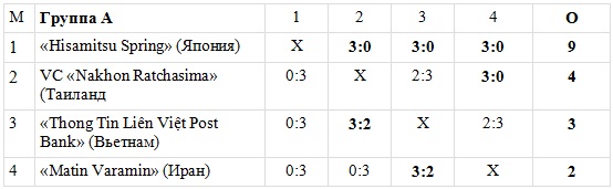 Группа «А»: VC «Nakhon Ratchasima» (Таиланд), «Hisamitsu Spring»