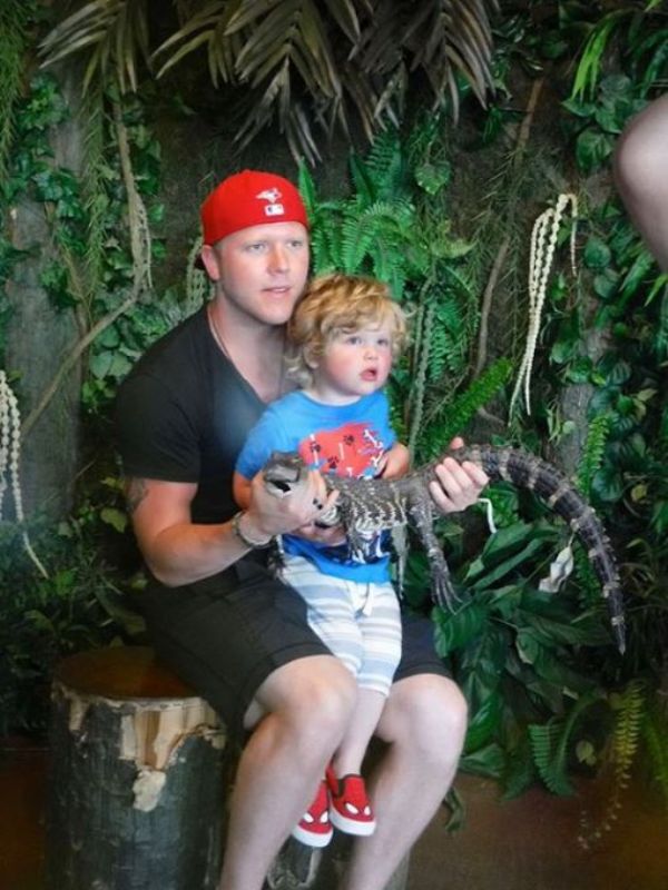 Защитник Кевин Даллмэн с сыном Джексоном, маленьким аллигатором очаровательной женой и дочкой отдохнули во Флориде.