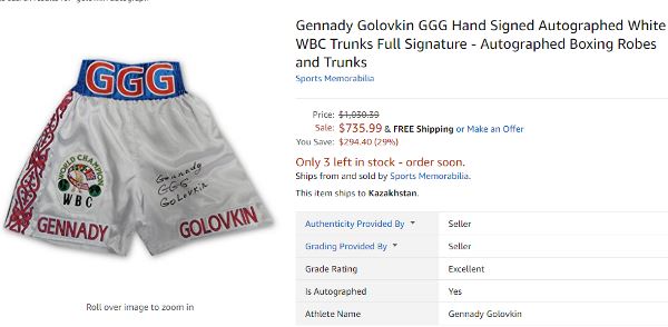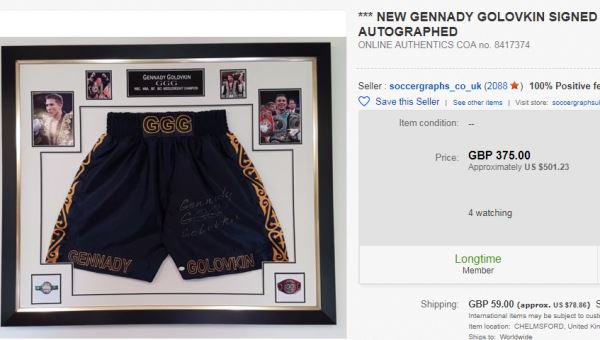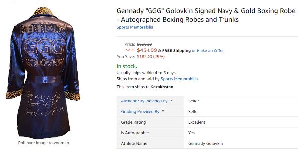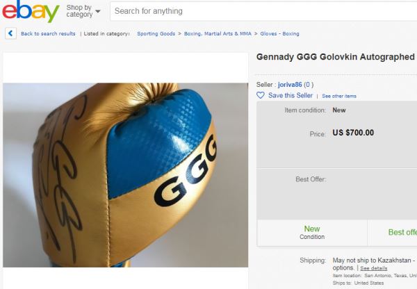 На момент написания материала на популярном в США интернет-аукционе eBay.com продавались 3886 лотов, имеющее непосредственное отношение к бренду GGG. Из них 46 — с автографами карагандинца. Общая стоимость именных вещей составила 17119 «зеленых» (в среднем — по 372 доллара за один лот).
