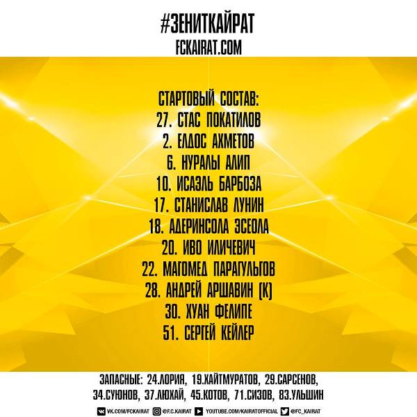 Состав «Кайрата» на игру: