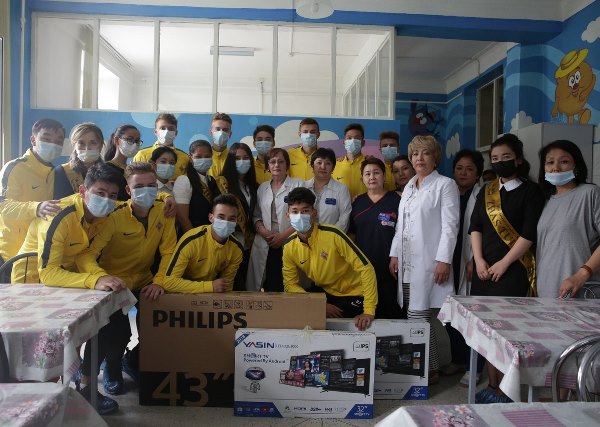 От имени клуба воспитанники Академии «Кайрата» вручили институту телевизор и пожелали всем больным скорейшего выздоровления и крепкого здоровья.