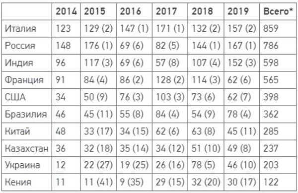 Всемирное антидопинговое агентство (ВАДА) опубликовало отчет по нарушениям за 2019 год, передает Sports.kz со ссылкой на «Спорт-Экспресс».
