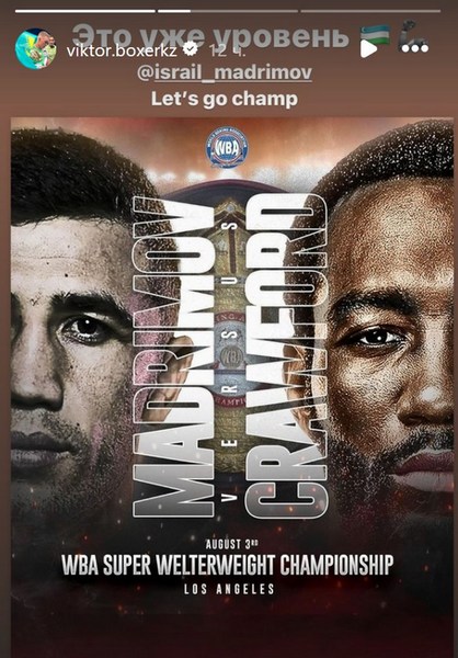 «Это уже уровень. Исраил Мадримов, let’s go champ», — написал Виктор в Instagram Stories о предстоящем поединке.
