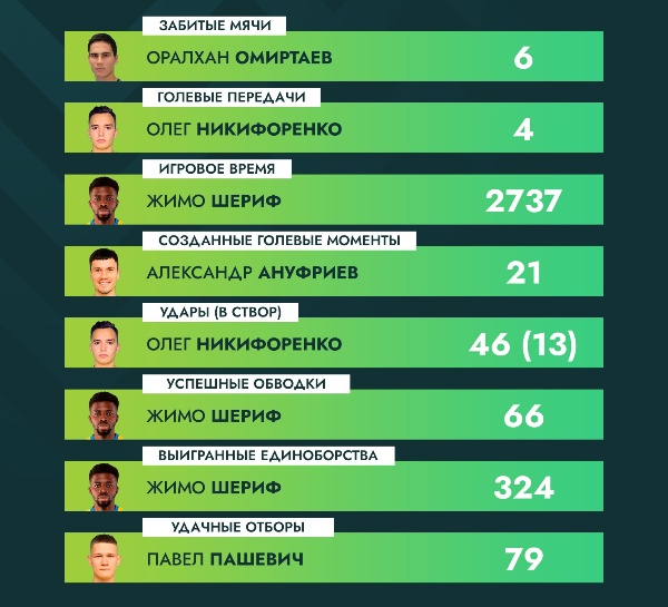 Казахстанский форвард Оралхан Омиртаев является лидером по забитым мячам — шесть голов в сезоне.