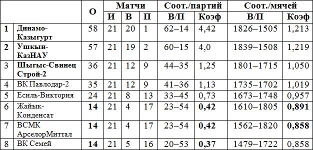 «Динамо-Казыгурт» (Шымкент), «Ушкын-КазНАУ» (Алматы), ВК «Семей»,