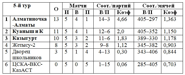 Турнирное положение пятого тура: