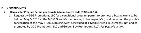 заседания Атлетической комиссии штата Невада, которое состоится