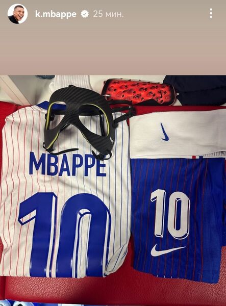 Форвард сборной Франции Килиан Мбаппе, который ранее сломал нос, показал защитную маску для лица, в которой он может сыграть в предстоящем матче второго тура группового этапа чемпионата Европы с Нидерландами, сообщает Sports.kz.