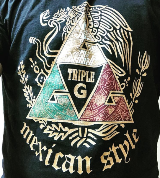 В частности, болельщики делают на майках принты, на которых запечатлено сразу несколько национальных символов. Например, буквы GGG выполнены в цветах флага Мексики с древними этническими узорами майя, которые вместе образуют пирамиду. На заднем плане изображен орел, пожирающий змею — герб Мексики, а под ним надпись — «Мексиканский стиль».