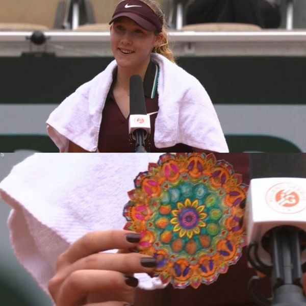 «Когда я выходила на корт, маленькая девочка положила мне это на скамейку. Думаю, это был счастливый талисман. Сейчас он уже не такой красивый, потому что намок под дождём, но я всё равно его сохраню. Кто бы ни была та девочка, спасибо ей, потому что именно поэтому я сегодня выиграла», — сказала 18-летняя россиянка в интервью на корте.