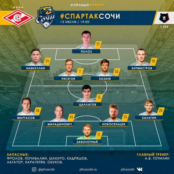 Представляем Вашему вниманию стартовый состав «Сочи»: