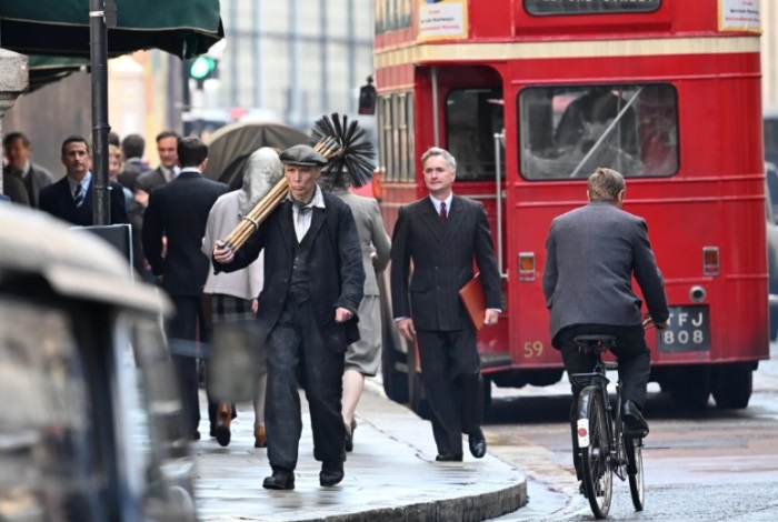 Лондонские улицы возле Банк-Стейшн и Королевской биржи превратились в съемочную площадку. Декорации воссоздают атмосферу 1950-х годов с тщательно продуманными деталями: от афиш боксерских поединков до объявлений о музыкальных спектаклях.