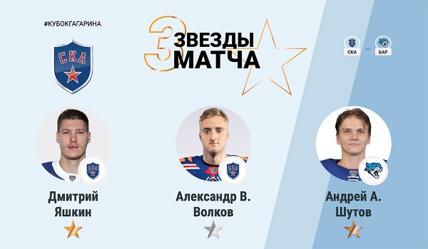 Официальный сайт КХЛ назвал трёх звёзд матча между питерским СКА и астанинским «Барысом», в котором казахстанская команда уступила со счётом 1:3, передает Sports.kz со ссылкой на Shaiba.kz.