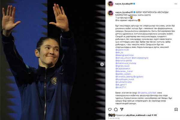 «Чемпионат мира завершился! Сборная Казахстана заняла первое место в общем зачёте. Это потрясающий результат!