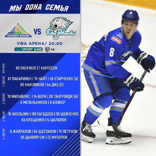 Прямая трансляция гостевого матча «Барыса» с «Салаватом Юлаевым» в «регулярке» КХЛ