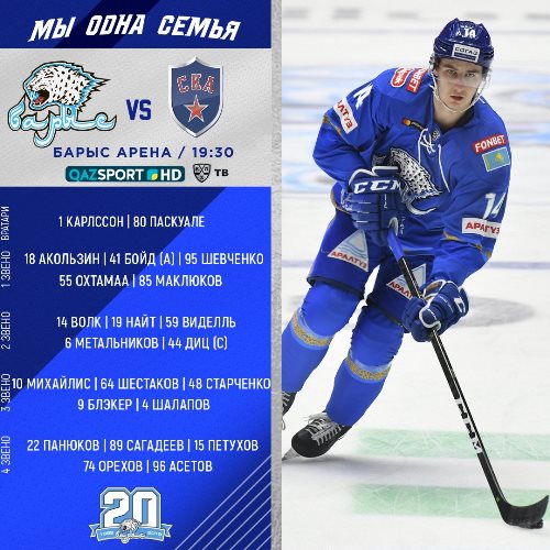 Сегодня в Нур-Султане «Барыс» проведет матч Континентальной хоккейной лиги с санкт-петербургским СКА.
