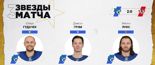 Официальный сайт Континентальной хоккейно лиги назвал главных звёзд матча «Барыс» — «Автомобилист», в котором хозяева одержали сухую победу со счётом 2:0, передает Sports.kz со ссылкой на Shaiba.kz.