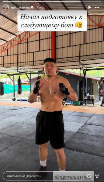 «Начал подготовку к следующему бою», — написал Хамитов в «сторис» инстаграма, прикрепив фото из тренировочного лагеря Tiger Muay Thai, который расположен на Пхукете (Таиланд). Информацией о сопернике и дате своего возвращения в октагон Куат не поделился.