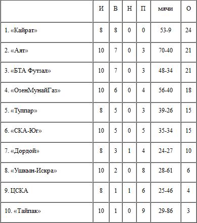 Алматинский «Кайрат» на своем поле без особых проблем разобрался со столичной «Ушкын-Искрой», дважды разгромив последних 6:0 и 9:1.