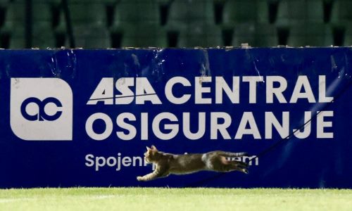 В начале матча в Сараево произошел забавный момент с котом, который прогулялся по полю стадиона «Асима Ферхатович-Хасе». Фотографии необычного момента можно посмотреть ниже.