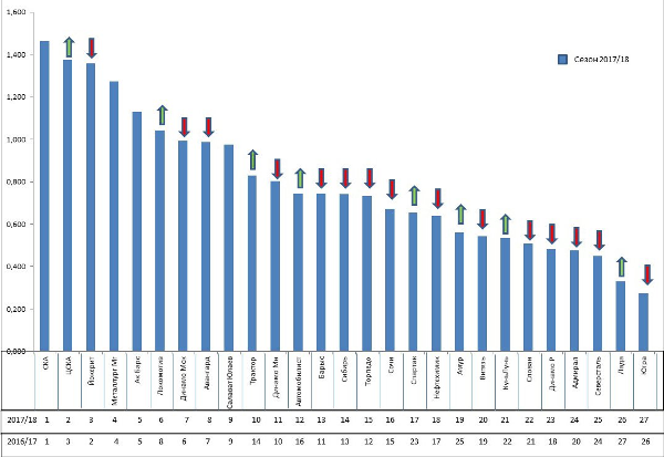 Официальный твиттер Континентальной хоккейной лиги (КХЛ) опубликовал инфографику рейтинга клубов по итогам сезона-2017/18, сообщает Sports.kz.