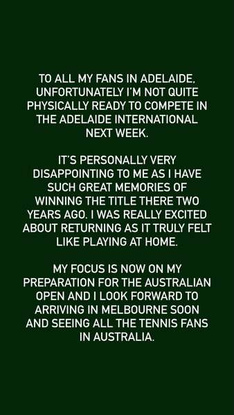 Теперь я сосредоточен на подготовке к Austalian Open и с нетерпением жду скорого прибытия в Мельбурн и встречи со всеми теннисными болельщиками в Австралии», — написал теннисист в инстаграме.