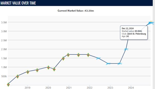 Защитник санкт-петербургского «Зенита» и национальной сборной Казахстана Нуралы Алип достиг рекордного для себя показателя трансферной стоимости, передает Sports.kz.