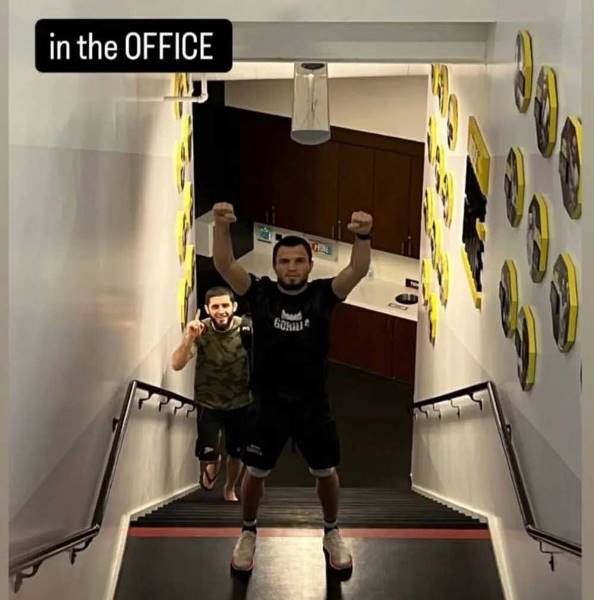 «В офисе!», — написал Махачев в комментарии.