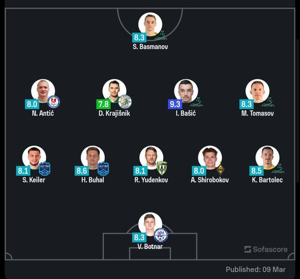 На сайте опубликована символическая сборную первого тура КПЛ, куда вошли голкипер: Виталий Ботнарь («Иртыш») — 8,3 балла; защитники Сергей Кейлер («Улытау») — 8,1 балла, Глеб Бухал («Улытау») — 8,6 балла, Руслан Юденков («Атырау») — 8,1 балла, Александр Широбоков («Кайрат») — 8,0 балла, Карло Бартолец («Астана») — 8,5 балла; полузащитники: Никола Антич («Ордабасы») — 8,0 балла, Дамиан Краишник («Кызылжар») — 7,8 балла, Иван Башич («Астана») — 9,3 балла, Марин Томасов («Астана») — 8,3 балла; нападающий: Станислав Басманов («Астана») — 8,3 балла.