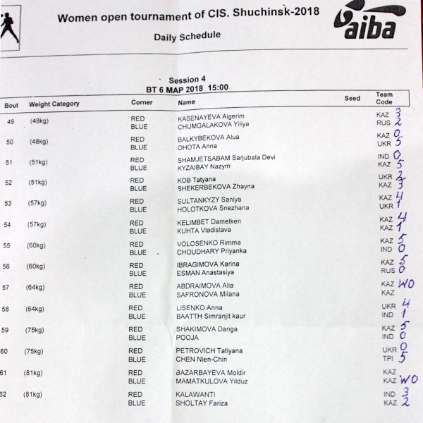 В финале 7 марта в весовой категории до 48 килограммов встретятся Айгерим Касенаева и украинка Анна Охота. Третье место в этом весе разделили Юлия Чумгалакова (Россия) и Алуа Балкибекова.