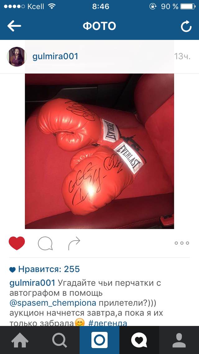 Геннадия Головкина с его автографом. В Казахстан перчатки чемпиона