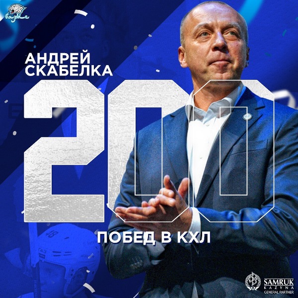 «Победа в матче с „Автомобилистом“ стала 200-ой в КХЛ для Андрея Владимировича. Поздравляем, тренер!» — гласит сообщение на официальной странице «Барыса» ВКонтакте.