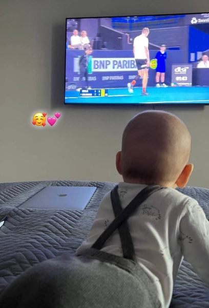 На нём его полугодовалый сын Василий наблюдает за игрой Александра по телевизору. Бублик оставил под фото эмодзи «сердце».