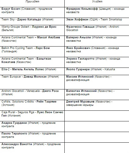 Sport.zakon.kz отследил трансферы казахстанской велогруппы на будущий сезон.