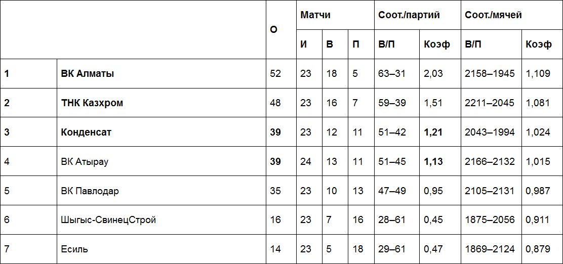 ВК «Алматы» — «Конденсат» 3:1 (18:25, 25:18, 25:19, 25:13)