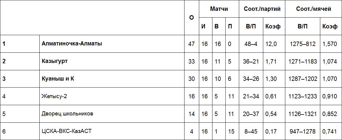 Рефери: Кокина, Сыздыков. Время матча: 67 мин.. Соот. мячей: 97:60