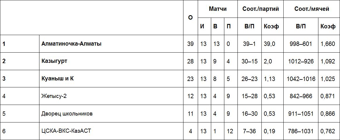 Рефери: Сыздыков, Куандыков. Время матча: 61 мин.. Соот. мячей: 54:75