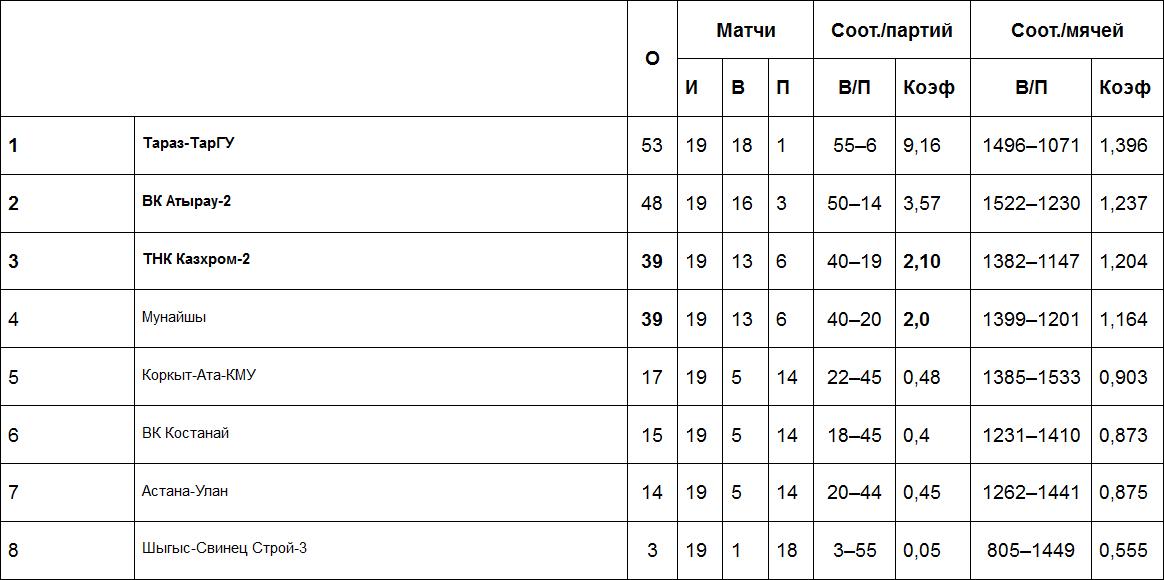«Коркыт-Ата-КМУ» — «Мунайшы» 0:3 (15:25, 17:25, 18:25)