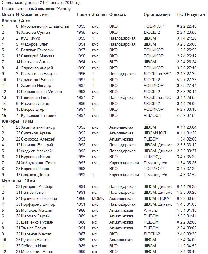 Представляем Вашему вниманию результаты спринтерской гонки у мужчин, юниоров и юношей на Кубке Казахстана.