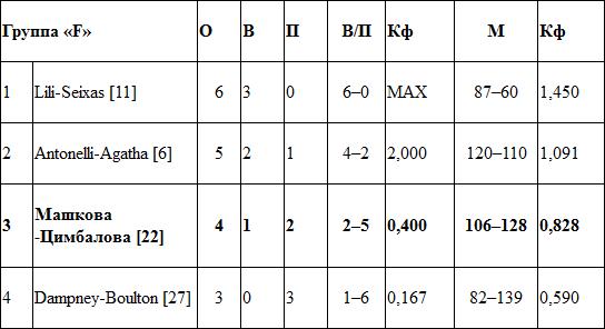 Машкова / Цимбалова: Итог — 17 место, 320 очков