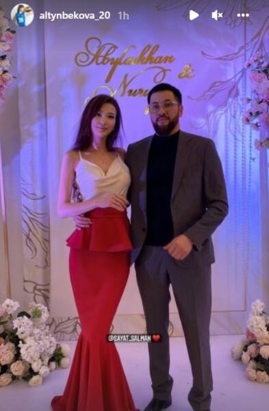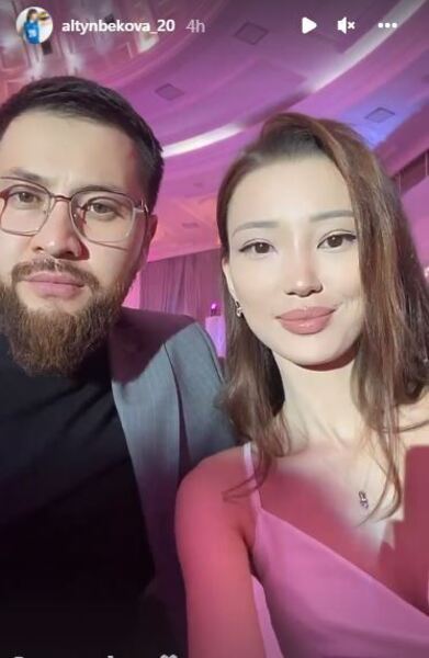 Фотографии с торжественного мероприятия Алтынбекова опубликовала на своей странице в сторис. Где она показала одну селфи, а также другую фотографию со своим супругом. Пара была одета в стильные и наряды, Сабина облачилась легкое и не вычурное платье, а Саят предстал в классическом сером костюме.