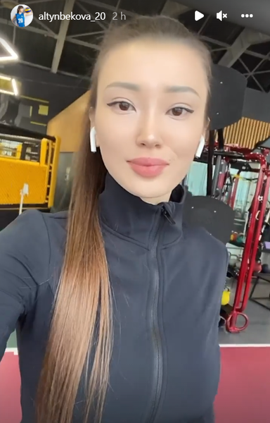 Алтынбекова в разделе сторис социальной сети опубликовала короткое видео на беговой дорожке, в котором он подчеркнула свою красивую фигуру и внешность.
