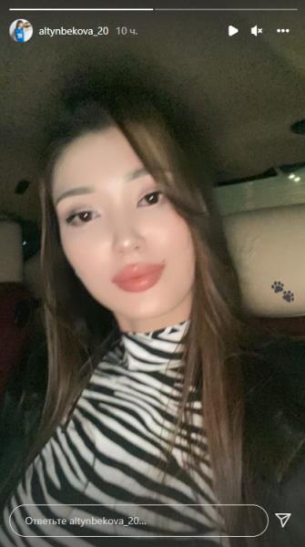 На своей странице в Instagram в разделе «сторис» Алтынбекова разместила очередные фото в эффектном наряде.