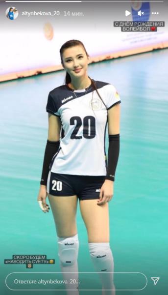 «С днем рождения, волейбол. Скоро будем „наводить суету“», — написала Алтынбекова на своей странице в Instagram в разделе «сторис», прикрепив фото в спортивной форме.