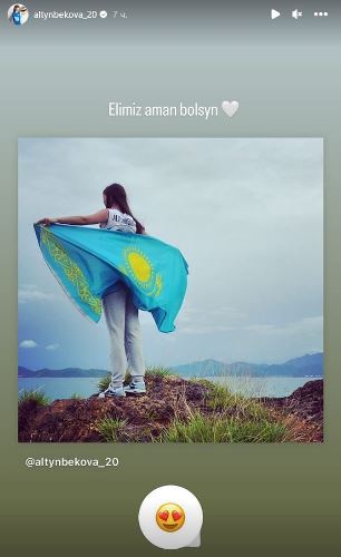 Спортсменка опубликовала в Instagram Stories свою фотографию с флагом Казахстана и оставила слова поздравления.