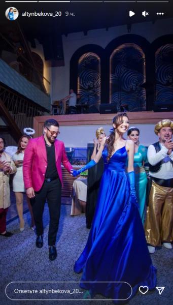 На странице в Instagram в разделе «сторис» одна из самых главных красавиц в казахстанском спорте разместила новые фото, на которых она в стильных нарядах вместе со своим мужем Саятом Салманом танцует и весело проводит время с другими гостями торжества.