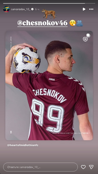 Футболист РПЛ опубликовал в своём инстаграм-аккаунте фотографию Чеснокова в форме шотландского «Хартса» и отметил его аккаунт в социальной сети. Также Самородов передал свои эмоции с помощью эмодзи: изображения тигра, облегчения и обнимающихся людей. Несмотря на то, что в публикации нет ни одного слова, можно легко понять всё, что Максим хотел передать своему товарищу.