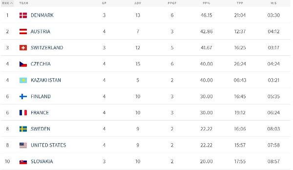 положение в рейтинге команд на чемпионате мира-2023 по хоккею в Риге (Латвия) по игре в численном большинстве, передает Sports.kz.